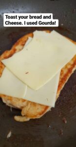 - Lightly toast your bread in a dry frying pan and top with gouda cheese.