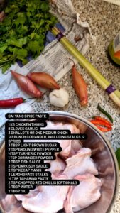 - Using a blender/food processor, make a paste using the following ingredients;garlic cloves, shallots or one medium onion, coriander, light brown sugar, ground white pepper, turmeric powder, coriander powder, fish sauce, dark soy sauce, kecap manis, lemongrass stalks, tamarind paste, chopped red chillies (optional), water and oil.You can make a smooth or rough paste.