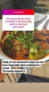 The famous Gujarati celebratory meal eaten on Eid day, Weddings, Aqeeqahs and the odd family get together. This epic lamb/mutton curry is traditionally eaten with fluffy moreish 'Guji Naans' to mop up the rich and indulgent sauce.